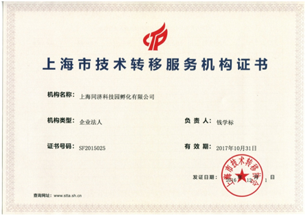 作为国家科技部A类国家级科技企业孵化器,上海同济科技园孵化器有限公司不仅被科技部火炬中心认定为大学生科技创业见习基地试点单位,并连续七年被评定为上海市科技孵化协会考评优秀单位、以及国家首批小型微型企业创业创新示范基地,近期又荣获“上海市技术转移服务机构”称号,为后期的服务拓宽了领域。