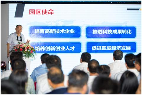 在随后的活动进程中,同济科技园总经理钱学标向各位来宾介绍了同济大学科技园的发展情况。南浔区副区长黄卫军介绍了“同济·南浔科创生态园”及南浔区科技人才政策情况。来自园区企业的两位嘉宾同臣环保总经理张文标和联泉智能总经理王祥分别作了发言分享。